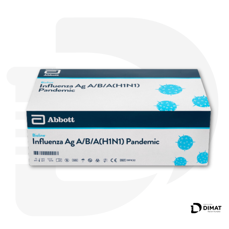 El kit de prueba rápida Bioline™ Influenza Ag A/ B/ A(H1N1) es un inmunoensayo cromatográfico rápido de un solo paso para la detección cualitativa y diferencial de antígenos del virus de la gripe tipo A, tipo B y A (H1N1) pandémico directamente a partir de muestras nasales / faríngeas / nasofaríngeas tomadas con hisopo o muestras nasales / nasofaríngeas aspiradas. Detección: Virus de la gripe A/B/A (H1N1) pandémico de UN SOLO PASO